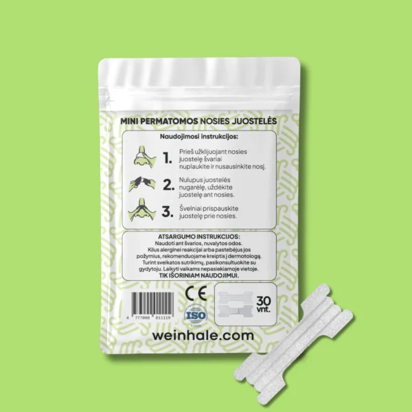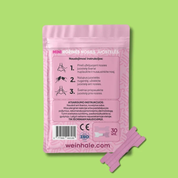 Mūsų mini nosies juostelės – tai patikimas pasirinkimas tiems, kurie ieško sprendimo kvėpavimui palengvinti ir miego kokybei pagerinti. Ypač tinka žmonėms su siauresnėmis ar smulkesnėmis nosimis.