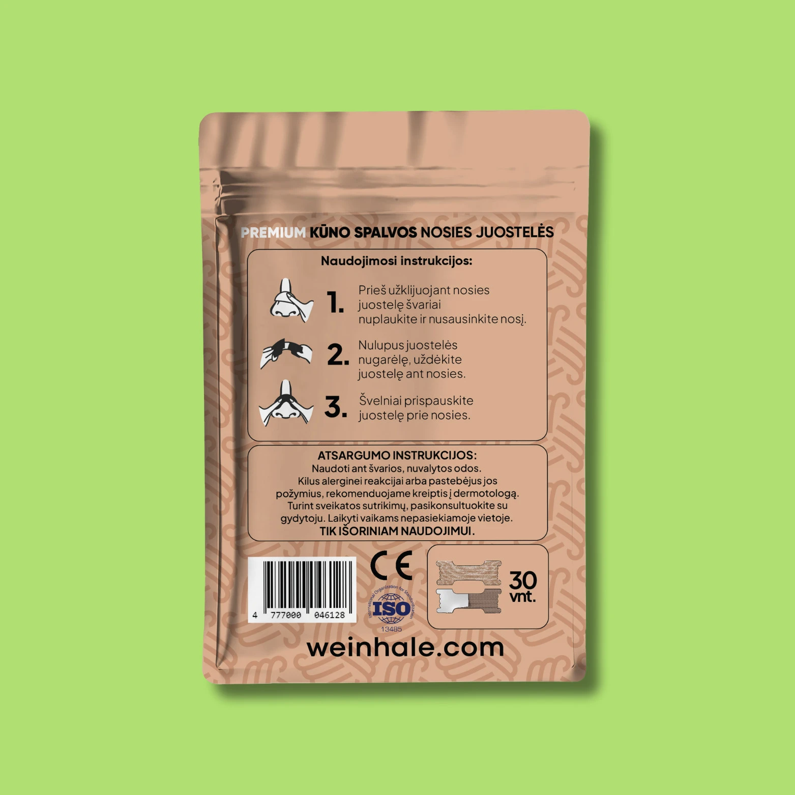 Mūsų premium nosies juostelės yra stipriausios ir efektyviausios rinkoje, sukurtos užtikrinti maksimalų kvėpavimo efektyvumą. Naudojama trijų pertvarų fiksavimo sistema leidžia tvirtai prilaikyti nosies šnerves, didinant deguonies pasisavinimą ir mažinant nosies užgulimą.